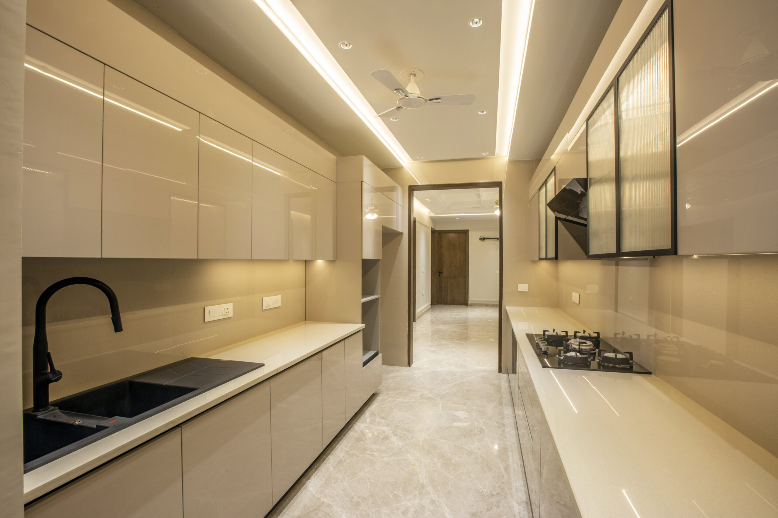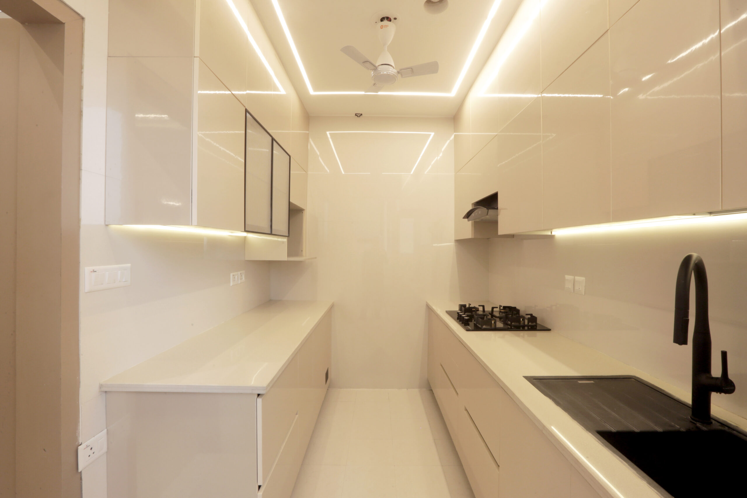 A kitchen is a room used for food preparation and cooking. In order to create a practical space for cooking and keeping kitchen necessities, it usually consists of appliances like a stove, oven, and refrigerator in addition to cupboards, counters, and a sink.